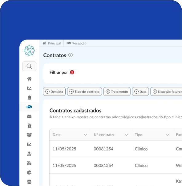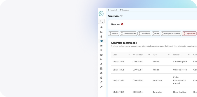 Cada funcionalidade foi projetada para atender às demandas específicas das clínicas odontológicas de grande porte. Aproveite o controle total sobre contratos, finanças, orçamentos, e muito mais.